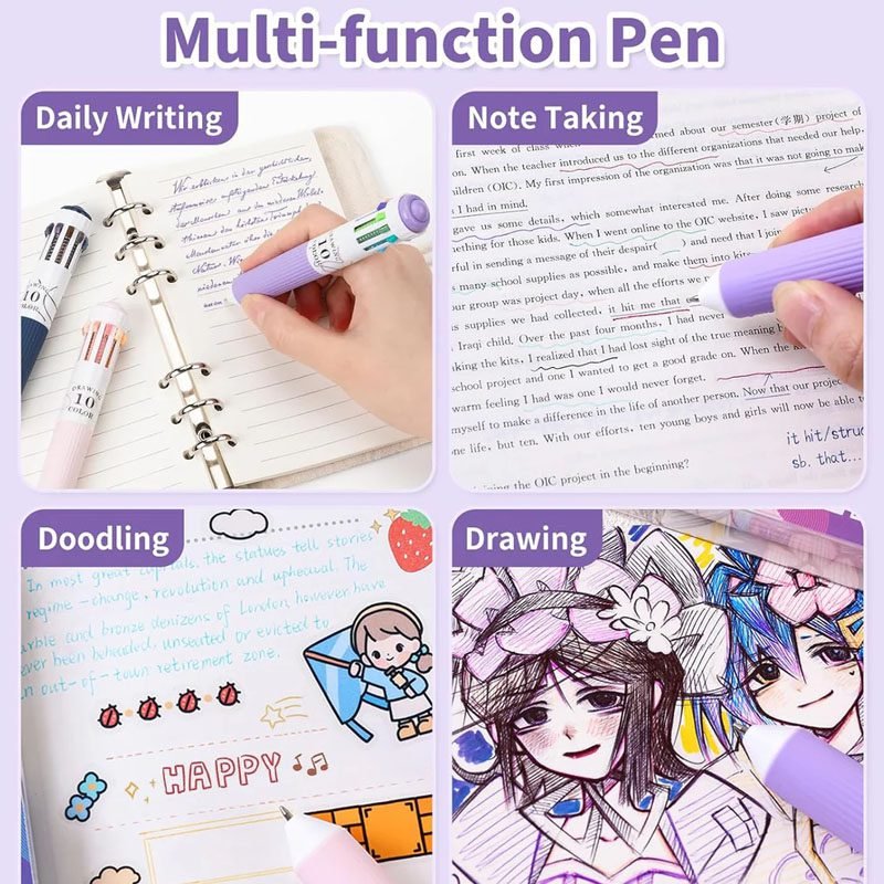 Experience the ultimate convenience of 10 colors in a single pen with our innovative 10-in-1 multi-color ballpoint pens! This 3-pack set gives you 30 total colors (including duplicates of popular shades) in a compact, retractable design that’s perfect for artists, students, and journal enthusiasts.