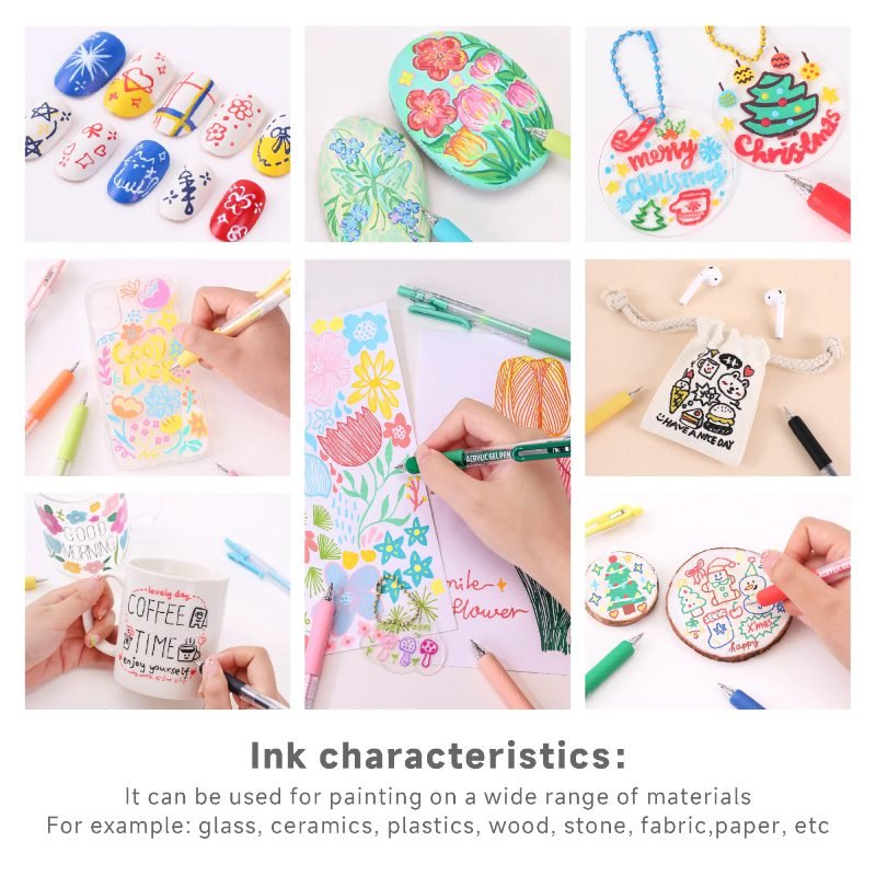 Versatile Creative Use: Perfect for painting, writing, marking, and DIY projects. These pens work effortlessly on paper, glass, ceramics, plastic, wood, fabric, stone, and more—ideal for line drawing, coloring, outlining, and blending