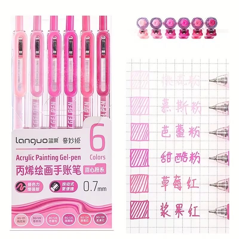 Languo Retractable Acrylic Gel Pens Sweet Pink 6 Colors Set D200-9