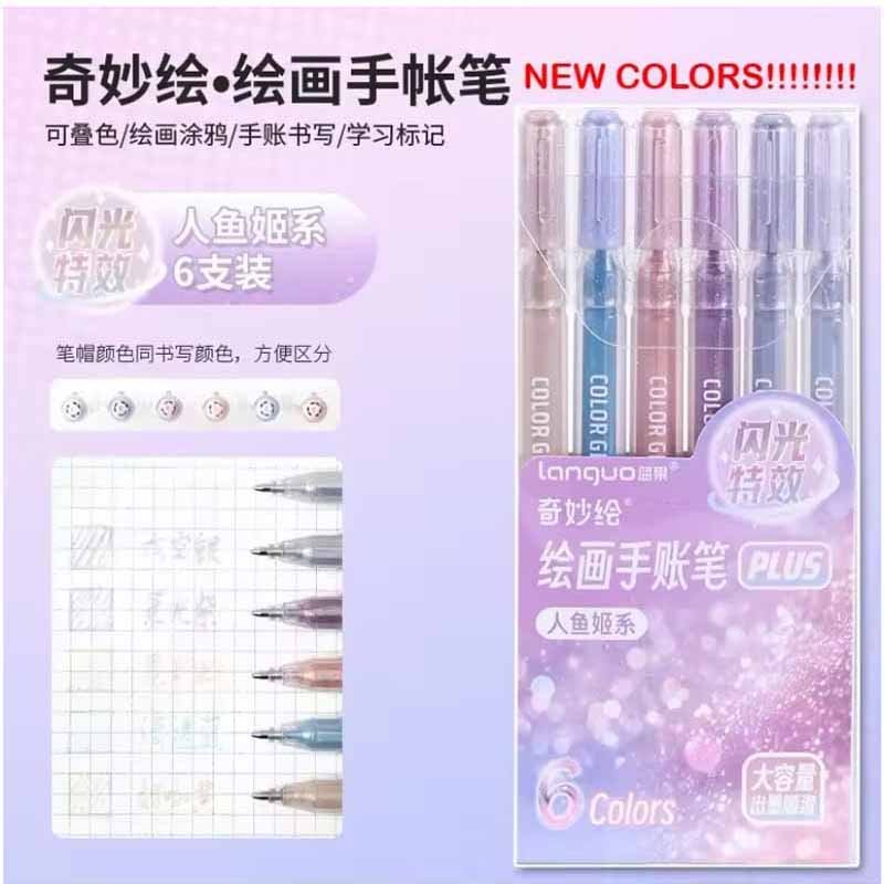 Languo Shiny Colour Gel Pen Plus Set of 6 Mermaid (P600-49)