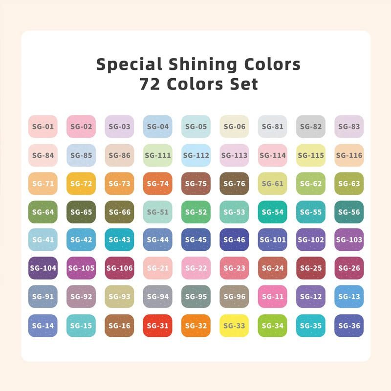 Special Shining Multi-Color (36-Color Set): This 36-color glitter gel pen set offers a dazzling and diverse range of shimmering hues. Each pen features specially formulated sparkling ink, varying in intensity, creating an extra layer of radiance. Perfect for those who want to add a standout touch to their artwork